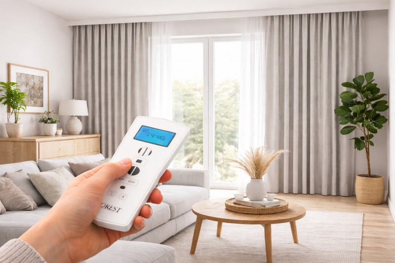 Jedną z największych zalet Forest Shuttle L jest niezwykle cicha i płynna praca napędu. Zasłony poruszają się miękko, bez szarpnięć i gwałtownych ruchów, co ma ogromne znaczenie szczególnie w sypialniach i strefach wypoczynku.